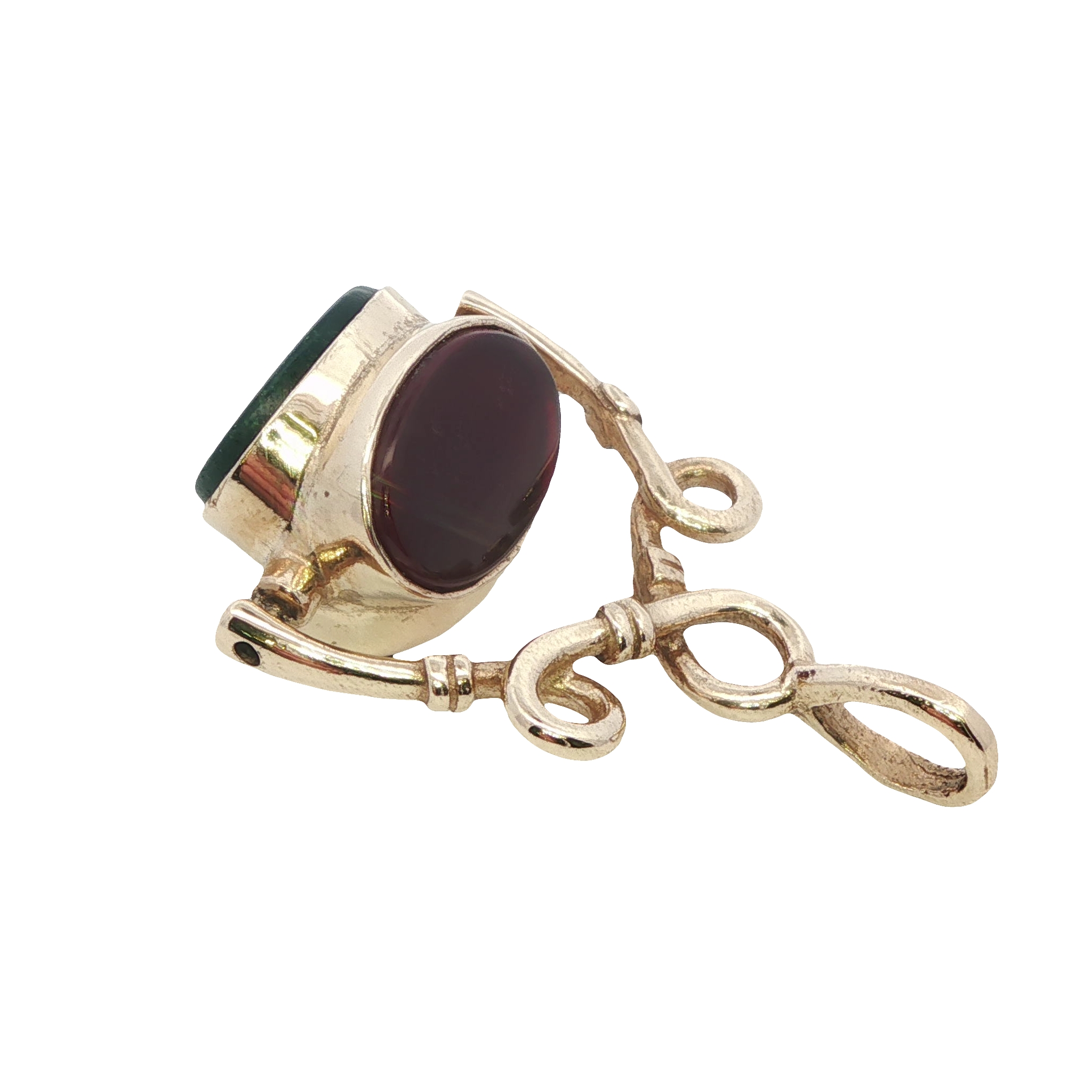 A Victorian 9ct agate fob swivvel fob featuring bloodstone and agate. These fabulous fobs were worn on watch chains and made a beautiful accessory!