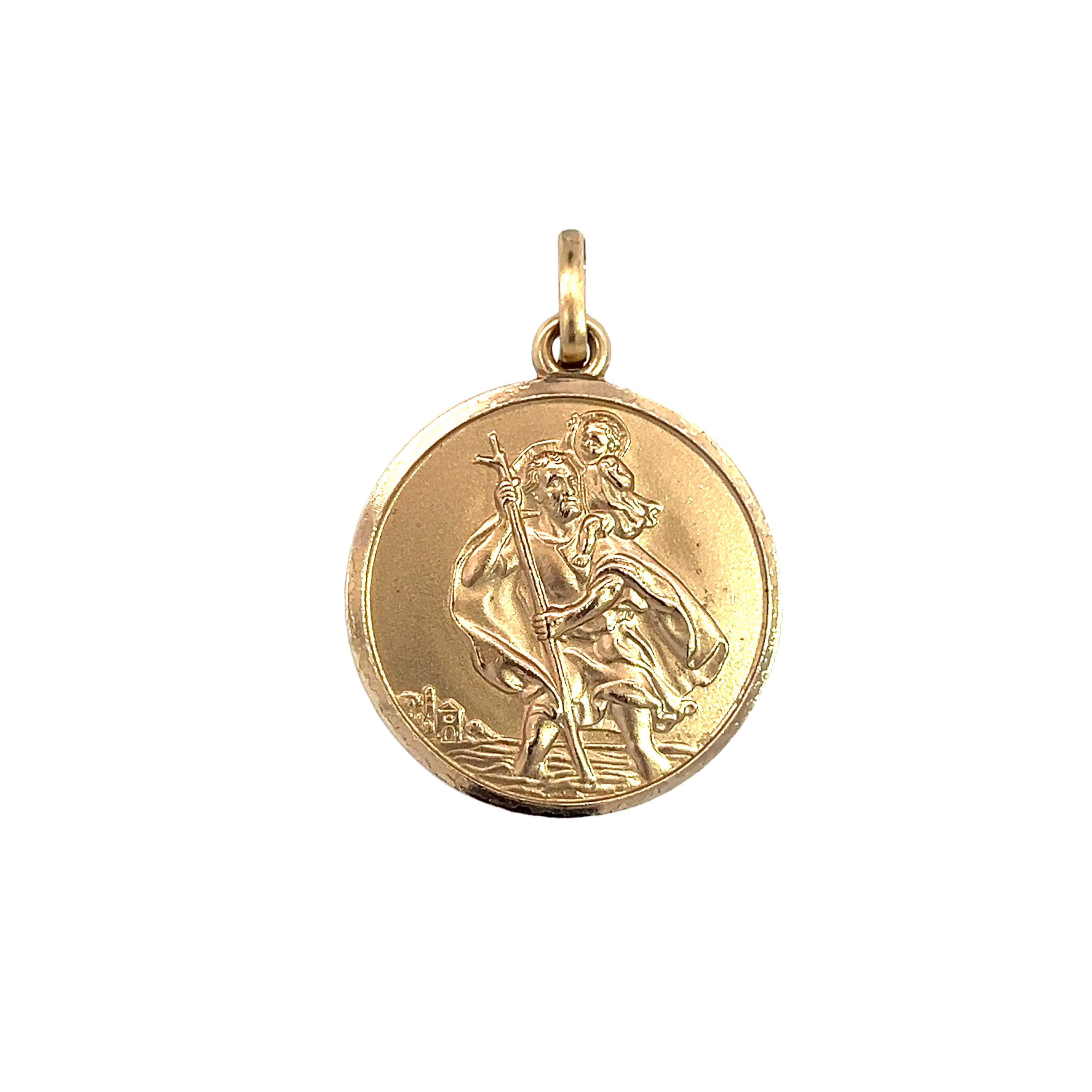 A lovely 9 carat gold St.Christopher's pendant with bail for chain. Condition: Excellent Era: Vintage Approximate dimensions: Pendant 2.50 x 2.50cm and overall length 3.50cm Weight: 9.06 grams