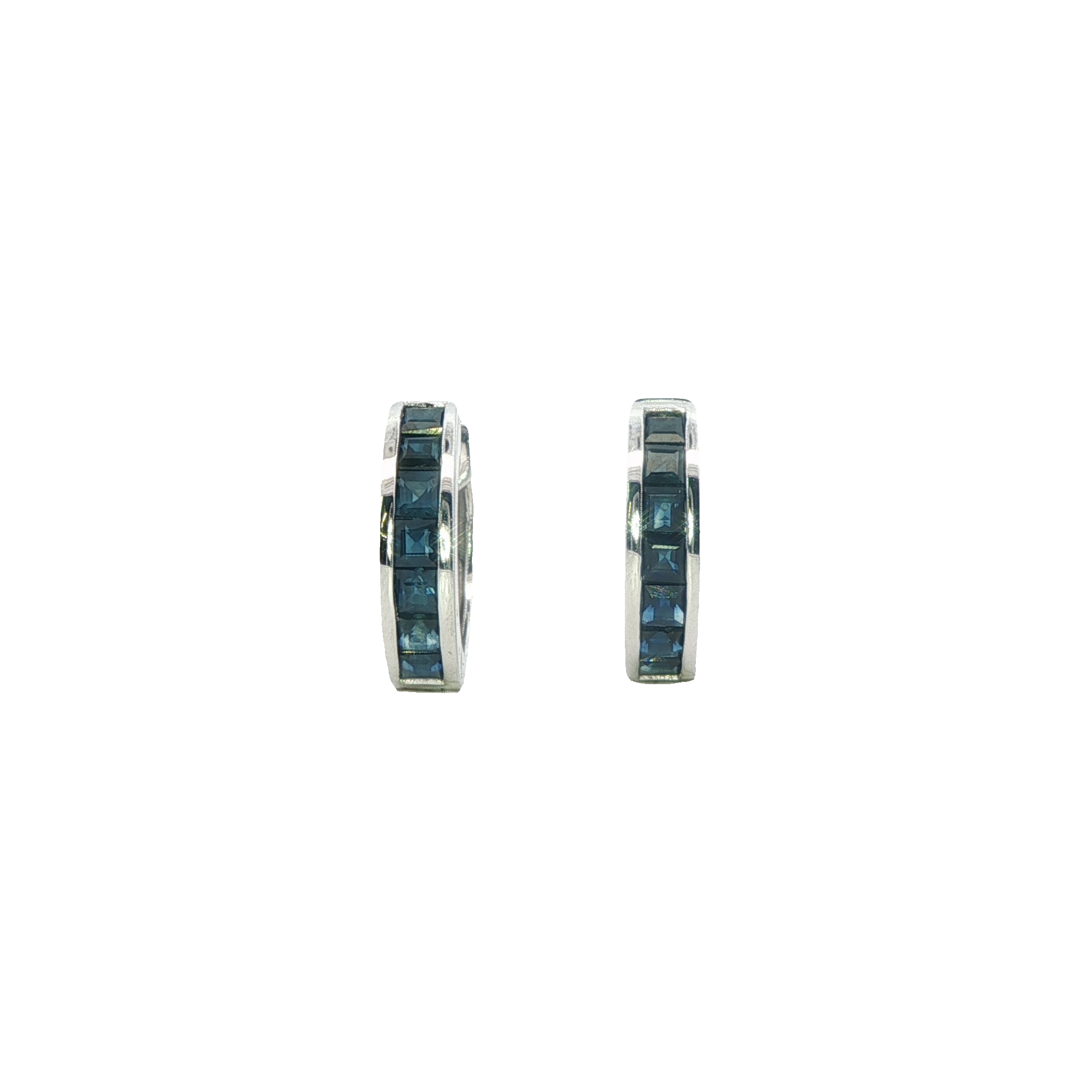 A classic pair of hoops earrings featuring channel set sapphires