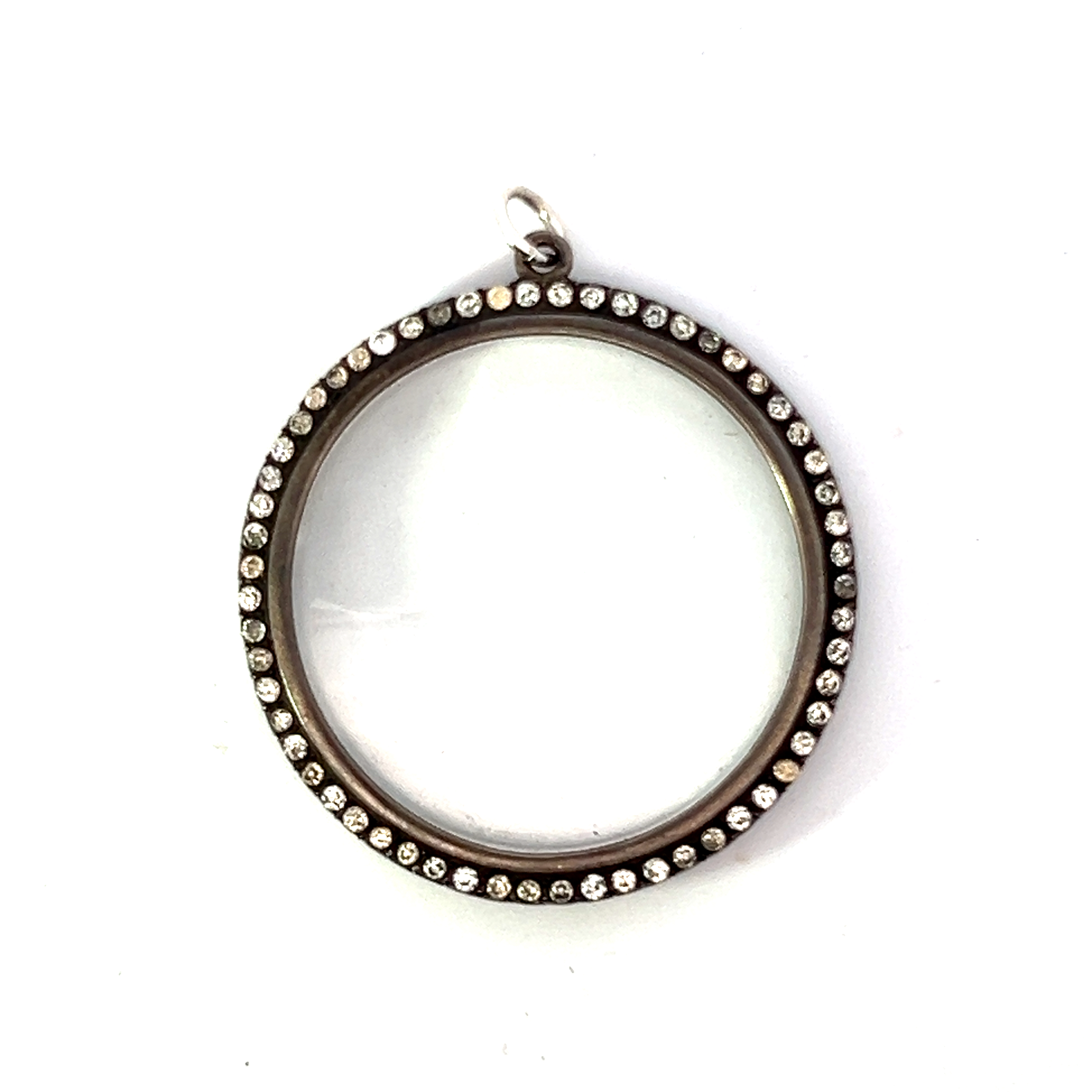 Description: A 1900s antique paste and silver round pendant locket. The back of the locket releases so you can choose a photograph of your own. Condition: Very Good Era: 1900s Approximate dimensions: 38.00 x 38.00mm Weight: 13.36 grams