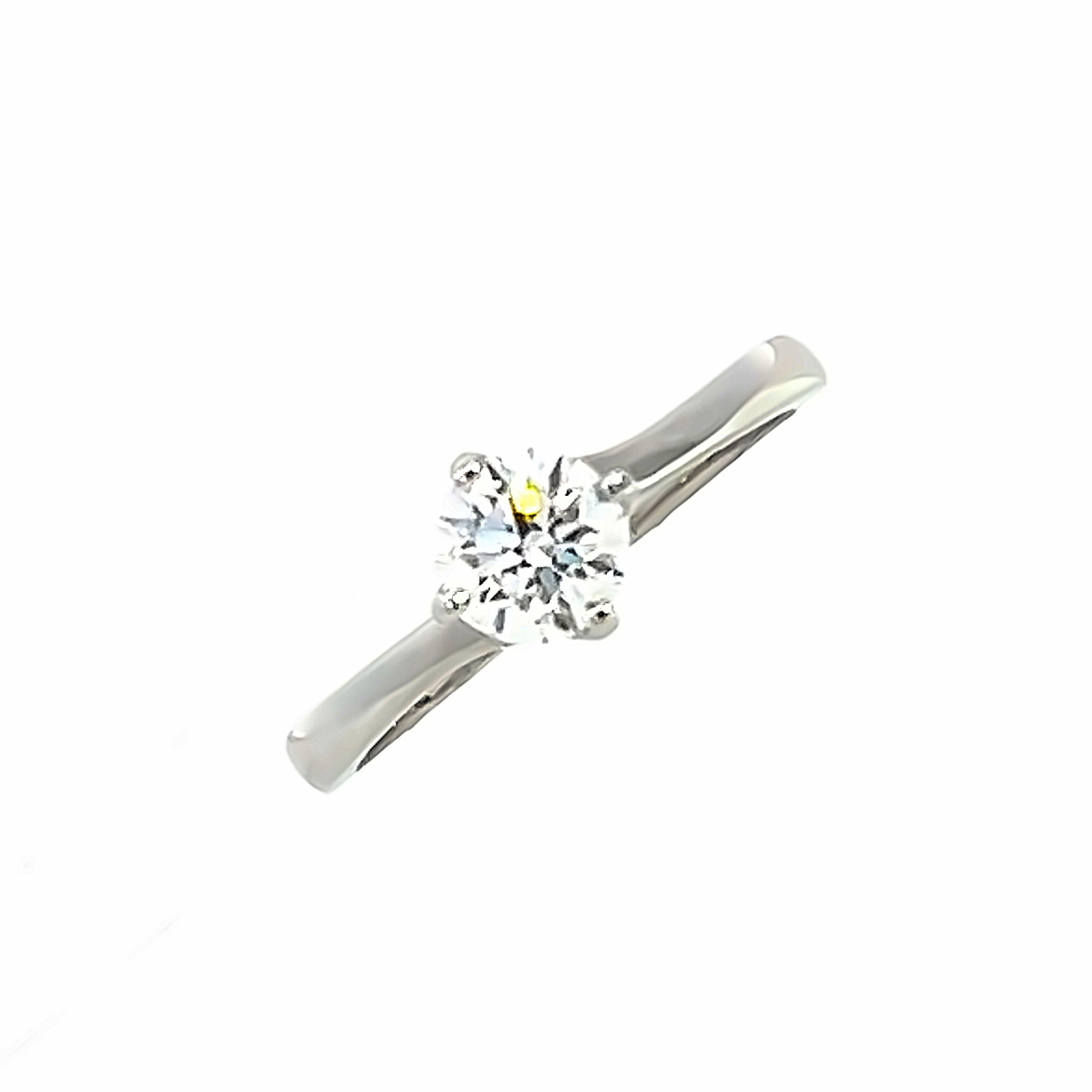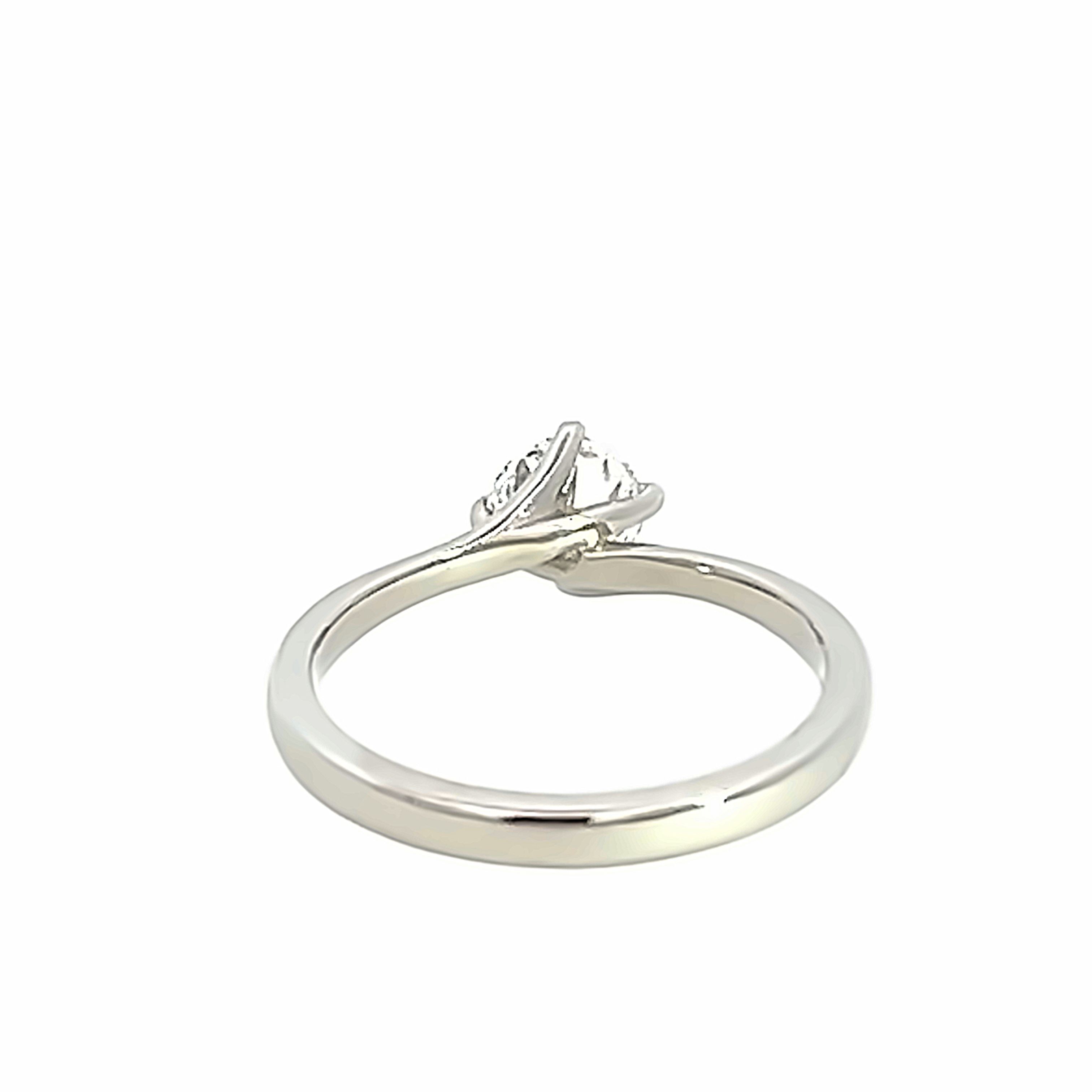 A modern platinum and diamond single stone engagement ring form our 'Ivy' collection. Featuring a 0.74 carat natural modern round brilliant diamond in a 4 claw twist style setting to a 2.2mm offset court shank. The Diamond has been graded by our gemmologists as E/F colour Si clarity. Finger size M gross weight 4.00 grams