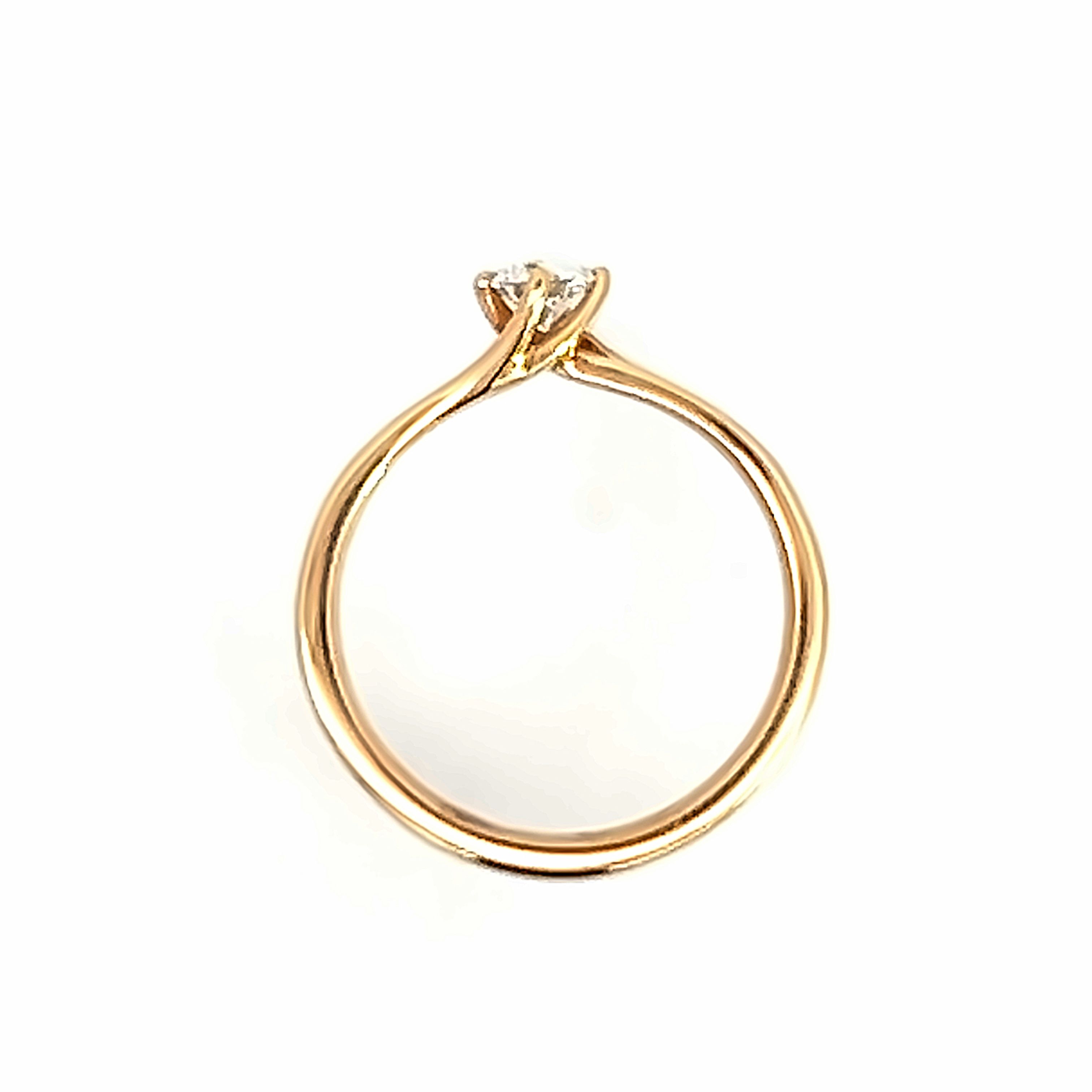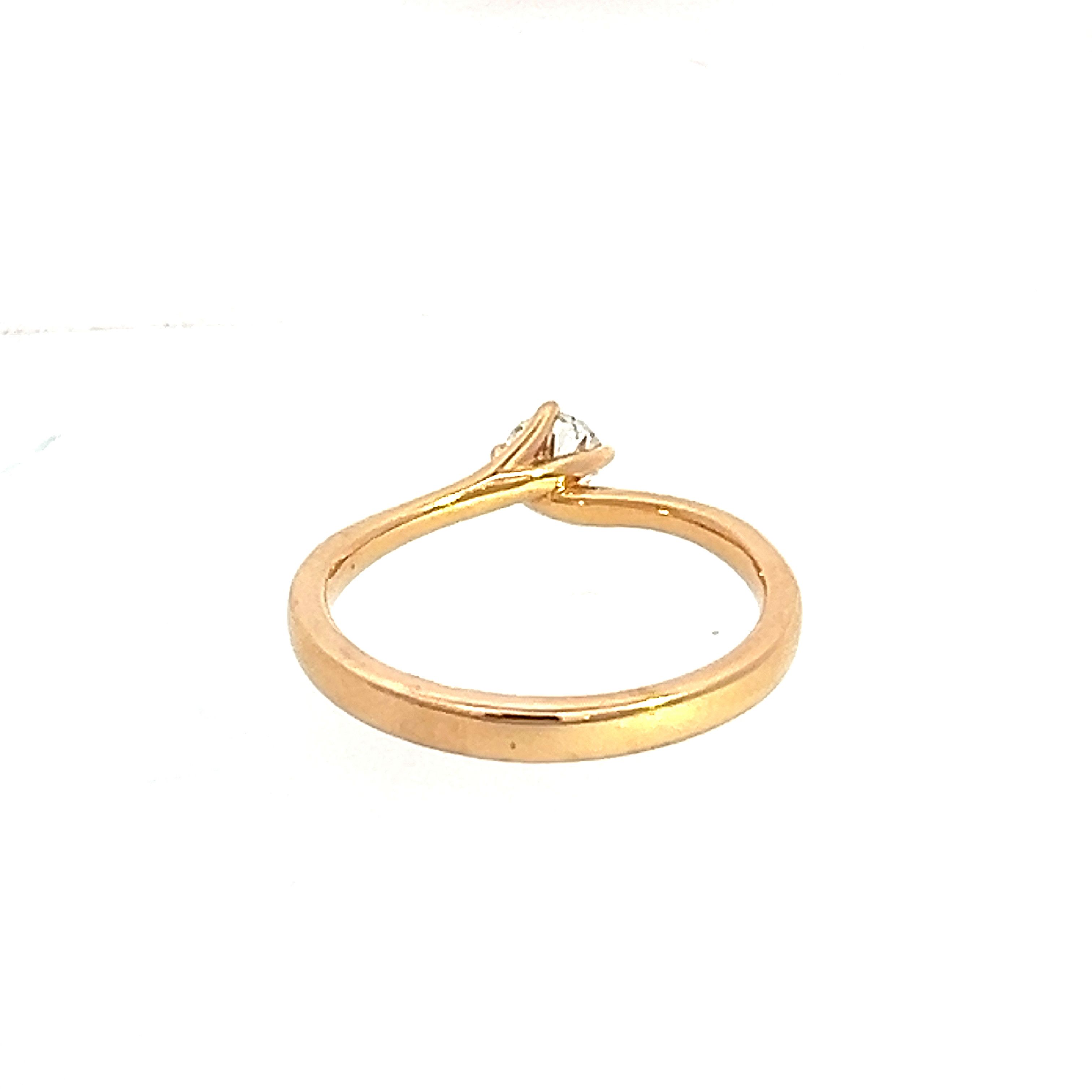 A modern 18 carat rose gold diamond engagement ring. Featuring a 4 claw twist design with a GIA certified 0.26ct round brilliant diamond of G Colour VS1 Clarity. Finger size M