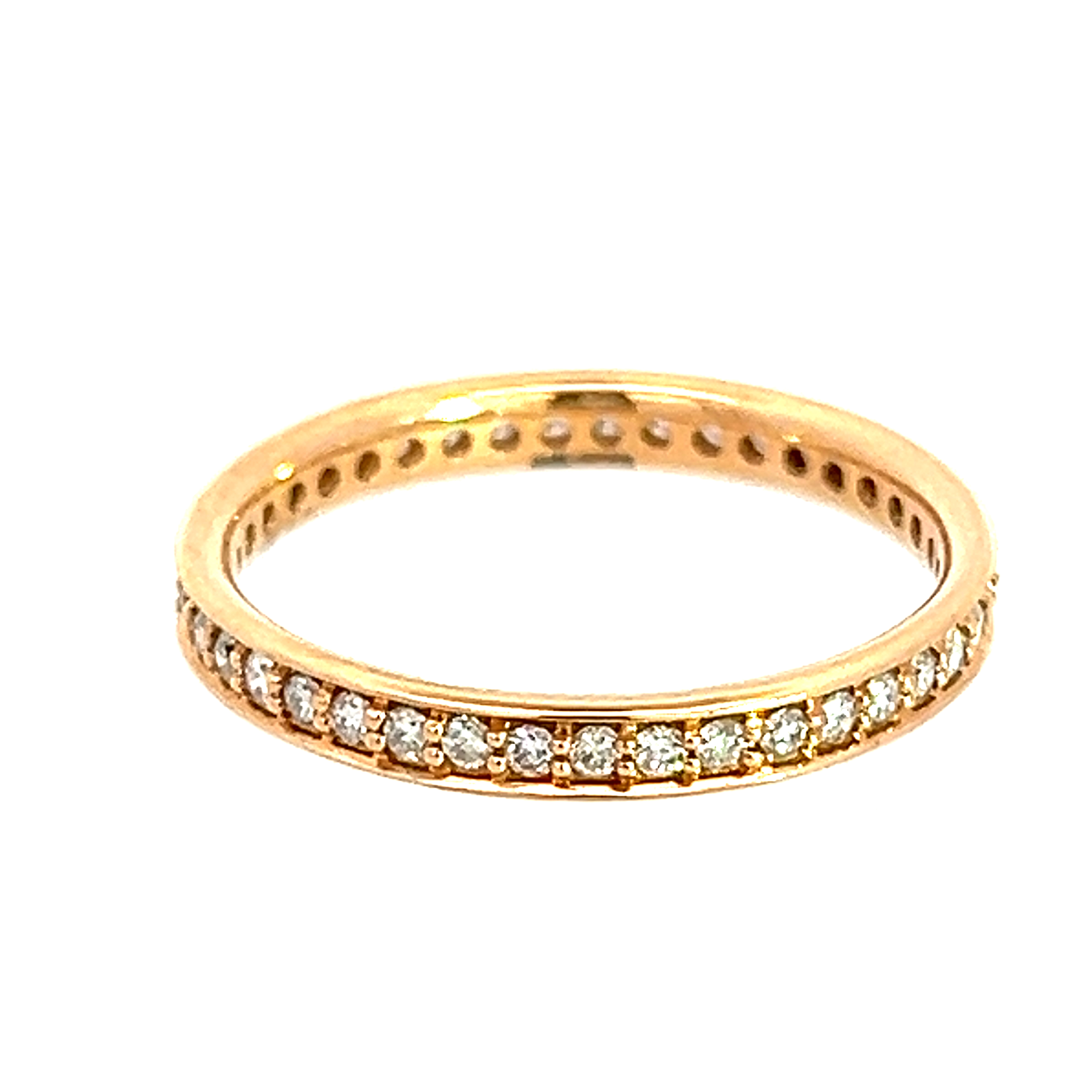 An 18 carat rose gold grain set full eternity ring with 0.34 carats of G colour VS clarity diamonds. 2.5mm 2.0grams Size M