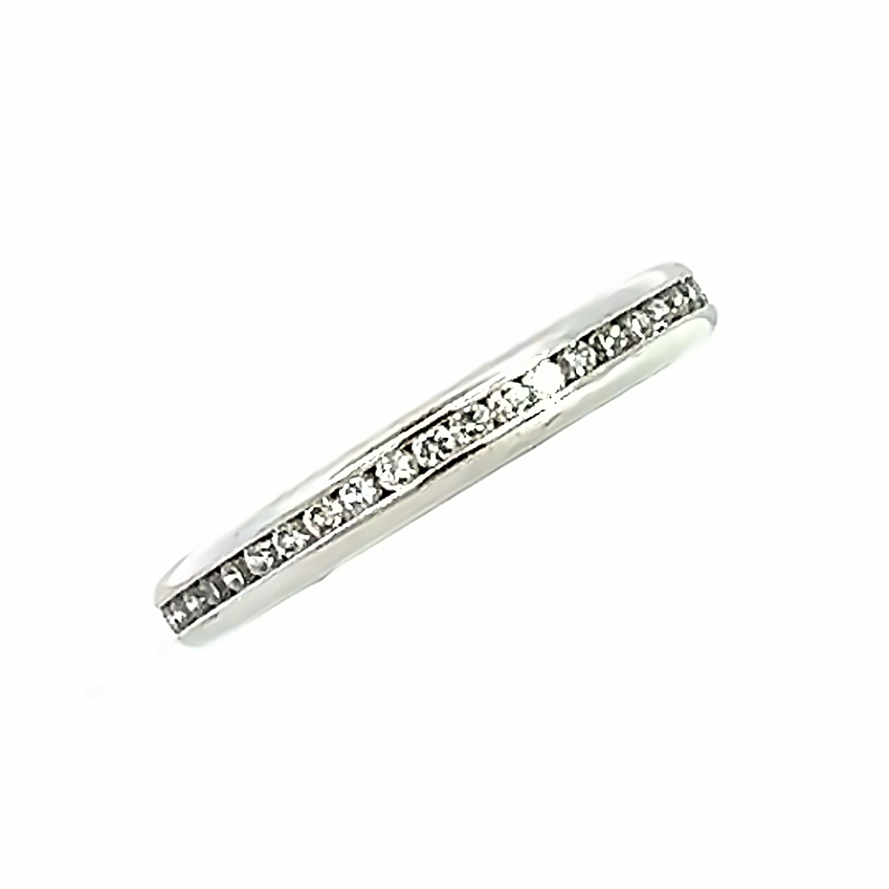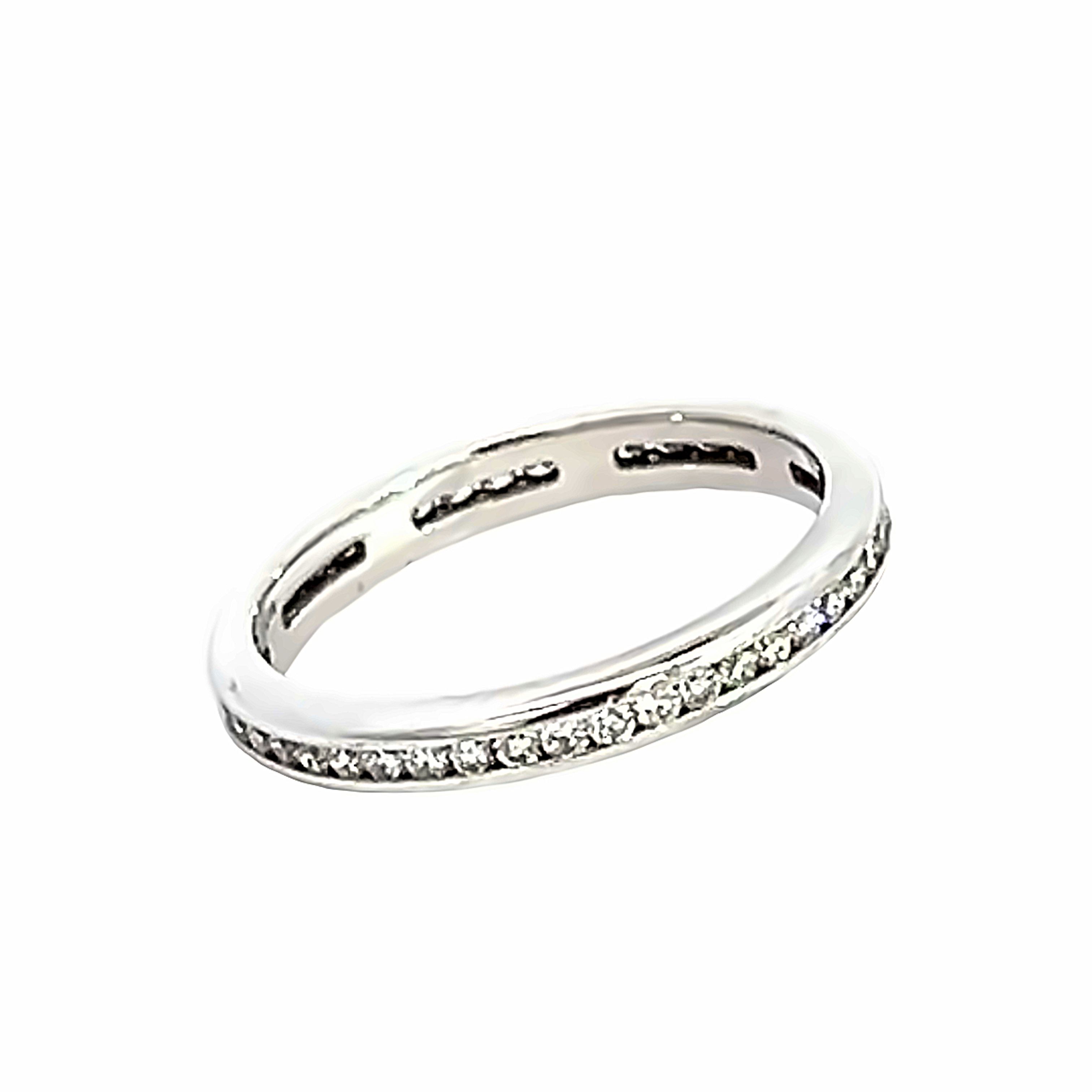 18ct White gold full eternity channel set ring featuring 0.50 carats of G colour and VS clarity modern round brilliant diamonds. The ring is approximately 4mm wide and finger size M.5.