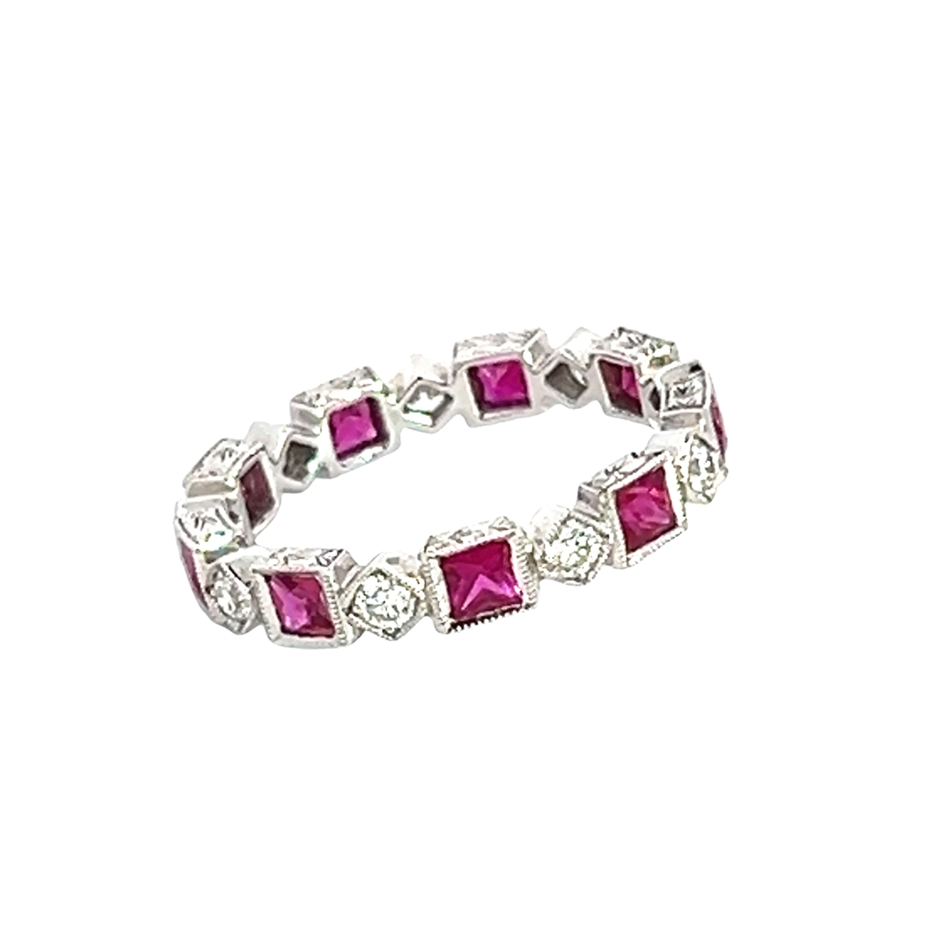 18 Carat White Gold, Ruby and Diamond Eternity Ring.